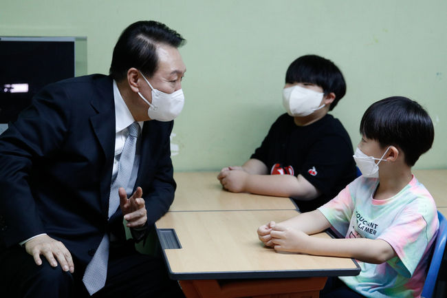 윤 대통령은 센터 종사자들에 "코로나19 팬데믹 위기에 고물가 위기까지 겹치면서 아이들 급식 준비 어려움과 전기료 부담으로 냉방기 가동이 어렵다는 소식을 접했다"며 지역아동센터 운영상 어려움에 공감하고 우려를 표했다.