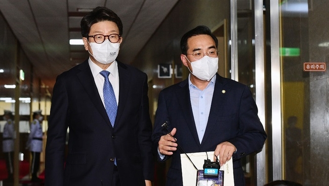 권성동 국민의힘, 박홍근 더불어민주당 원내대표는 21일 오후 국회에서 김진표 국회의장 주재로 원내대표 회동을 약 45분가량 가졌지만, 이견을 좁히지 못했다.