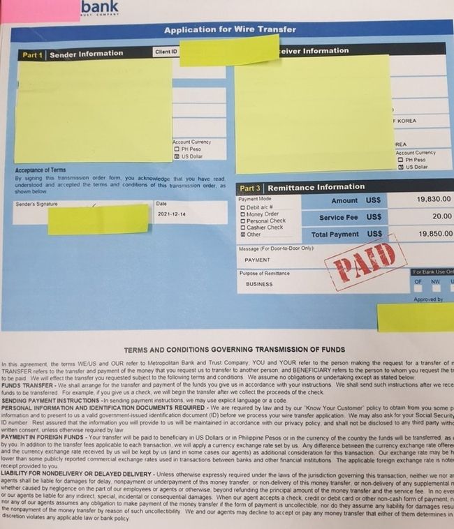 조사결과 이들은 필리핀 무역회사를 사칭해 무드등 등을 구입하겠다며 온라인으로 국내 중소기업에 접근, 물품 구입 주문서와 구매대금 입금 영수증 등을 위조해 입금을 완료했다고 기업들을 속였다. 이후 허위 물류회사로 납품을 요구하고 운송비를 요구해 이를 편취한 수법을 사용한 것으로 드러났다.