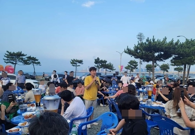 이 대표는 24일 경북 포항 한 해수욕장 앞 통닭집을 찾아 100여 명 넘게 모인 시민들과 '치맥(치킨+맥주)' 번개 모임을 갖기도 했다. 노란 티셔츠에 반바지 차림이었던 이 대표는 중간에 마이크를 잡으며 이야기하기도 했다.