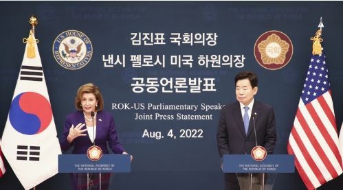 한국을 방문 중인 낸시 펠로시 미국 하원의장은 이날 김진표 국회의장과 북한 비핵화와 평화 정착을 위해 한미 양국 정부를 적극 지원하고, 한미동맹 70주년을 기념하는 축하 결의안 채택도 공동으로 추진하기로 의견을 모았다.