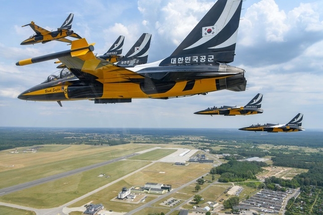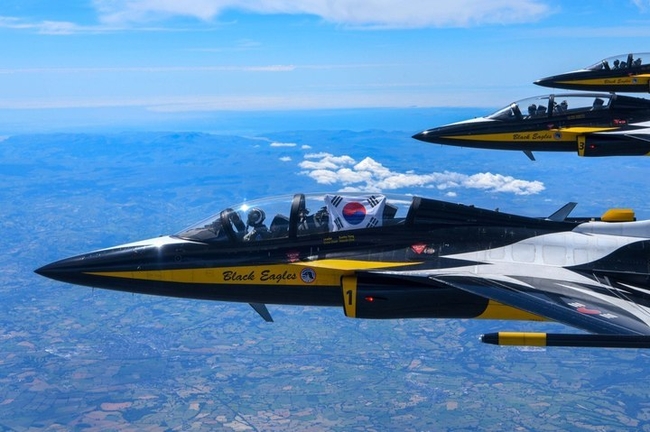 [시사뉴스 김성훈 기자] 공군 특수비행팀 블랙이글스가 지난 7월 17일(현지시간) 영국 페어포드 공군기지에서 열린 세계 최대 군사에어쇼 ‘리아트(RIAT) 에어쇼’에 10년 만에 참가해 최우수상과 인기상을 수상했다.