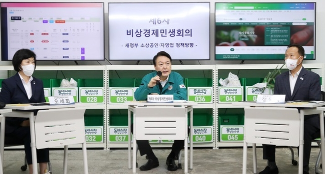 윤 대통령은 회의에 앞서 암사종합시장 내 점포들이 어떻게 디지털 전환에 성공했는지 직접 살펴봤다. 상점들이 라이브 커머스, 온라인 장보기, 온라인상인조합에 적응하는 방식에 대한 이야기도 들었다.
