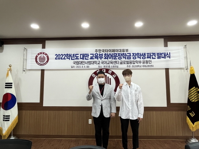 이번에 선발된 장학생은 호산대 글로벌융합학부 윤동민 학생으로 오는 9월부터 2023년 2월까지 대만 교육부 화어문장학으로 파견되어 국립대만사범대학교에서 교환학생으로 수학하게 된다.