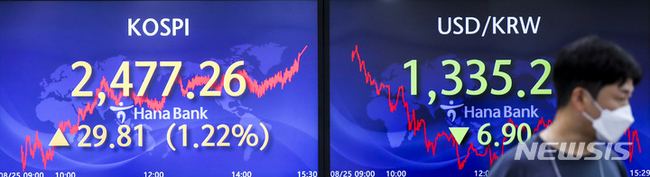 투자자들은 이날 한은 금통위와 제롬 파월 연방준비제도(Fed·연준) 의장의 잭슨홀 미팅 연설에 주목했다. 이 총재는 금통휘 직후 향후 금리 인상폭과 속도에 대해 물가를 성장보다 더 앞세우는 등 매파적 시각을 드러냈다.