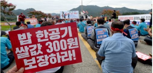 쌀값이 폭락한 것은 공급 과잉 때문이다. 지난 7월 말 기준 쌀 재고량은 48만 6000t으로 지난해 28만t에 비해 70% 가량 늘어났다. 지난해 생산된 쌀 388만t 중에서도 아직 10만t 규모가 시중에 남아 있어 올해 햅쌀이 재배될 경우 가격의 추가 폭락이 불가피 할 것으로 보인다.