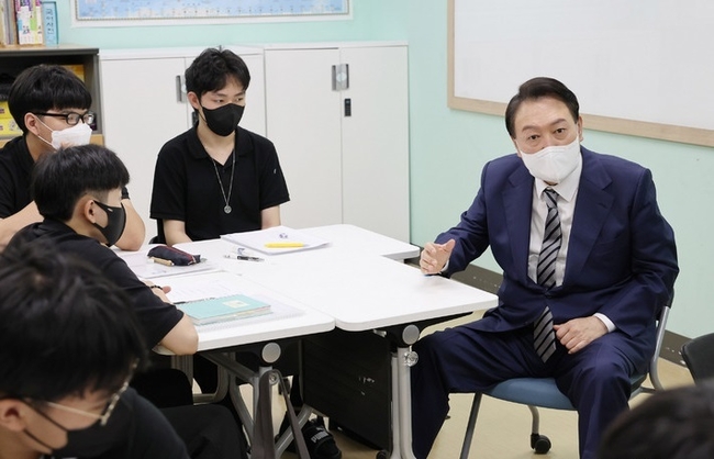 윤 대통령이 이날 방문한 곳은 서울시 구로구에 위치한 가족센터의 대안교육시설 '움틈학교', 다문화 가정 학생들의 기초 교육을 담당하는 곳이다.