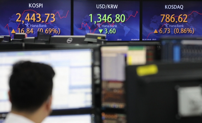 30일 코스피는 전 거래일(2441.21)보다 24.04포인트(0.99%) 상승한 2450.93에 장을 닫았다. 14.32포인트(0.59%) 오른 2441.21에 출발해 오후 2시50분을 지나서는 한때 1%를 넘어섰다.