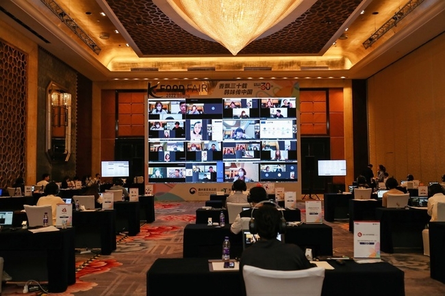 이번 상담회는 '30년 간 바람을 타고 전해온 향기, 한국의 맛을 중국에 전하다(香飘三十载,韩味传中国)'라는 주제로 우리 농수산 식품의 중국 수출 시장 확대를 위해 추진됐다. 국내 우수 수출 업체 38개 사와 중국 유력 바이어 70개 사 등 총 108개 사가 참여했다.