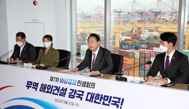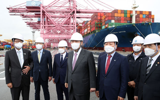 한편 윤 대통령은 이날 회의에 앞서 세계 2위의 환적 허브 항만인 부산항 신항의 항만물류시설을 방문했다. 윤 대통령은 이 자리에서 관계자들을 격려하고 현장의 의견을 청취했다고 대통령실은 전했다.
