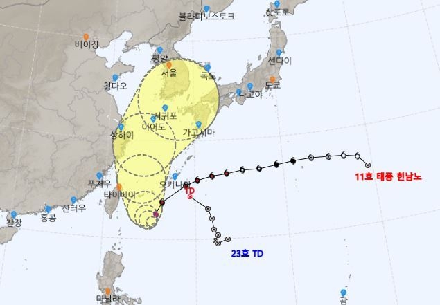 다만 우진규 기상청 예보분석관은 태풍의 한반도 상륙 여부에 대해선 "태풍의 북상 과정에서 많은 변수가 존재하고 현재의 수치모델로도 파악하지 못할 만큼 불확실성이 크다"며 "태풍 규모가 남한을 뒤덮는 규모로, 우리나라에 상륙하든 안 하든 미칠 영향이 높다"고 설명했다.