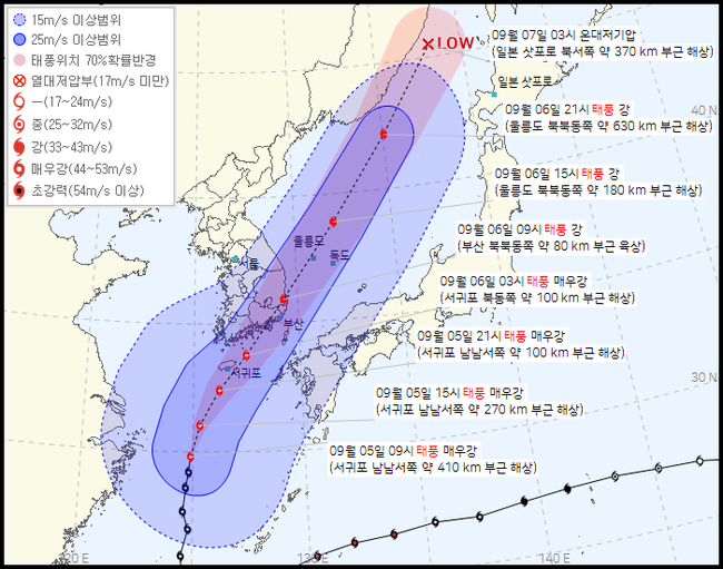 이어 "우리 군은 향후 태풍 진행 상황과 기상특보 등을 고려해 장병 안전을 최우선으로 태풍 대비태세를 유지할 것"이라며 "태풍으로 인한 피해 주민 안전보장을 위해 신속한 구조 및 복구 지원을 할 수 있도록 중대본, 지자체와 긴밀히 협조해 나가겠다"고 덧붙였다.