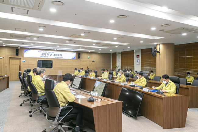 [시사뉴스 김미현 기자] 한국남동발전은 5일 제11호 태풍 ‘힌남노’ 북상으로 인한 피해 예방을 위해 총력 대응 태세에 돌입하면서, 경남 진주 본사에서 김회천 사장을 비롯한 전 경영진이 참석한 가운데 CEO 주재 전사 재난 대응 회의를 개최했다.
