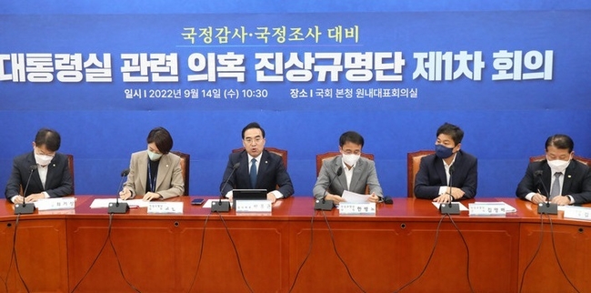 [시사뉴스 홍경의 기자] 더불어민주당이 대통령실 관련 의혹 진상규명단 운영을 시작했다. 대통령실 논란 관련 국정조사 추진, 국정감사 대응 등을 통한 윤석열 정부 공세 준비 컨트롤 타워 역할을 하게 될 전망이다.