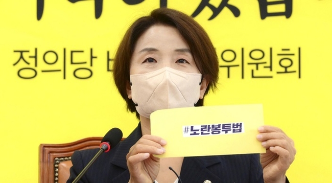 정의당이 15일 노동조합에 불합리한 손해배상 청구를 제한하는 것을 골자로 하는 '노란봉투법'(노동조합 및 노동관계조정법 개정안)을 발의했다.