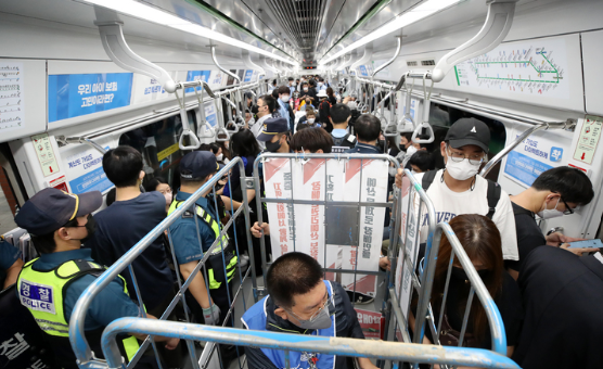 전장연 관계자 80여명은 2호선 시청역에서 당산역으로 향한 뒤 환승해 9호선 국회의사당역으로 이동할 예정이다.