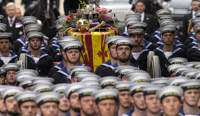 장례식은 왕 시신이 안치된 웨스트민스터 홀에서 인근 웨스트민스터 사원으로 운구하면서 시작됐다. 찰스 3세 국왕 등이 행렬을 따라 장례식장으로 이동했다.