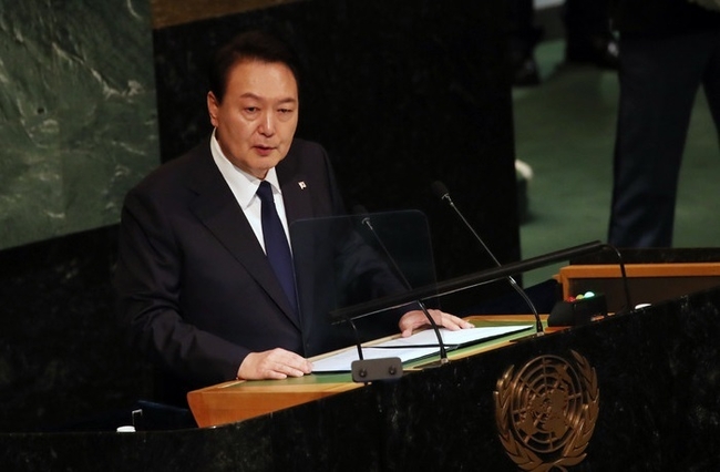 [시사뉴스 홍경의 기자] 윤석열 대통령 유엔총회 기조연설의 키워드는 자유 가치의 공유, 유엔 중심의 연대, 개도국에 대한 책임있는 지원에 방점이 찍혔다.