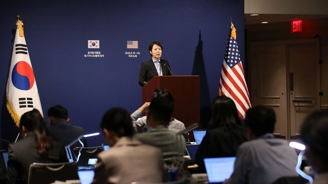 김은혜 홍보수석은 이날 오후 뉴욕에 마련된 프레스센터에서 "윤 대통령과 구테흐스 유엔 총장 간에 북한에 대한 시사점이 있었다"며 두 사람의 대화를 공개했다.