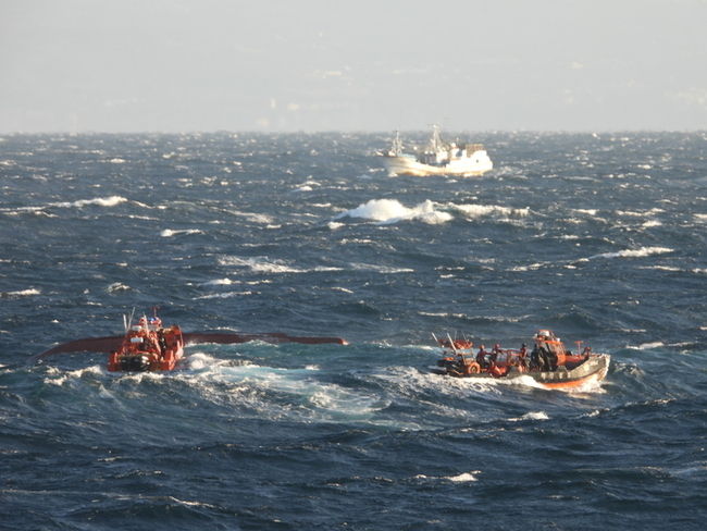사고 지점에는 풍랑주의보가 발효 중인 상태로 초속 14~16m의 바람이 불고, 파도도 3~4m로 일어 한때 구조작업에 어려움을 겪었으나 현재는 기상이 호전된 것으로 전해졌다.