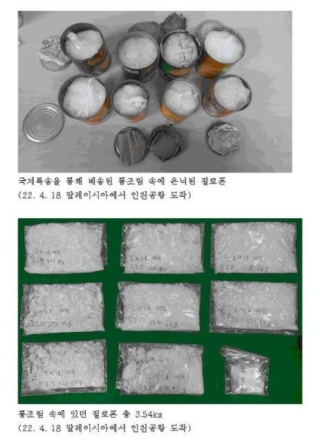 A씨 등 밀수책들은 세관의 감시망을 피하기 위해 동남아시아 현지에서 통조림 캔 속에 필로폰을 은닉한 뒤 국제 특급우편으로 국내 반입을 시도한 것으로 조사됐다.