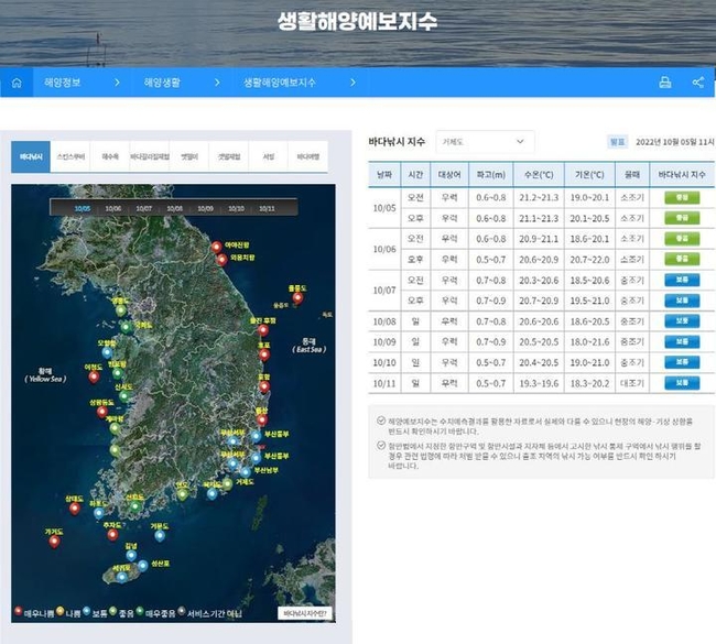 해양예보지수는 파도와 수온, 조류 등 해양예측정보를 활용해 해양레저나 선박운항 등 해양활동의 가능 정도를 분석·지수화한 자료다.