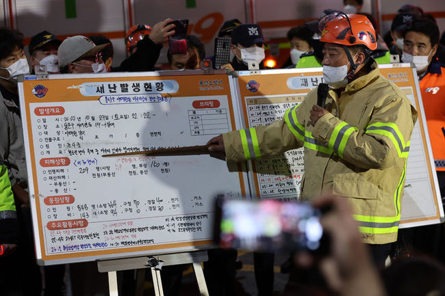 지난 30일 한 온라인 커뮤니티에는 '브리핑하면서 손 덜덜 떠는 용산소방서장'이란 제목으로 최 서장이 언론 브리핑하는 영상이 올라왔다. 영상에 따르면 당시 최 서장은 브리핑을 통해 사상자 집계와 현장 수습 상황 등을 발표했고 취재진 질문에 답했다.