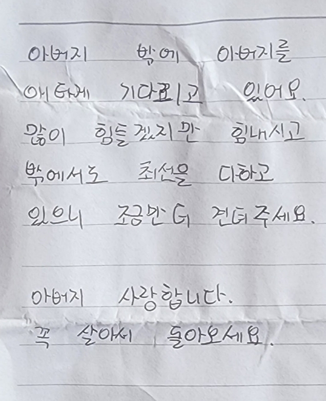 매몰된 작업자의 가족들이 쓴 손편지도 함께 동봉했다.