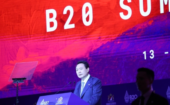 윤 대통령은 "민간 주도의 공급측 혁신으로 글로벌 복합위기를 극복하기 위해서는 민간과 정부 간 협력, 민간 부문 간 협력 등도 이뤄져야 한다. 이를 위해 B20의 역할과 위상에도 변화가 필요하다"며 "B20 고유의 글로벌 비즈니스 협력 의제를 발굴할 뿐 아니라 B20을 매개로 하는 기업 간 파트너십을 구축해야 한다. 이를 위해 B20이 글로벌 공급측 혁신을 위한 다층적인 협력의 핵심축으로 자리매김하길 바란다"고 했다.