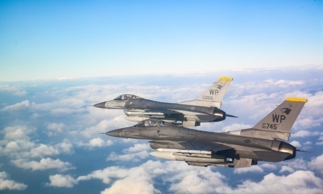 F-16은 이번 훈련에서 가상의 적을 향해 AIM-9 단거리 공대공 미사일을 발사했다.