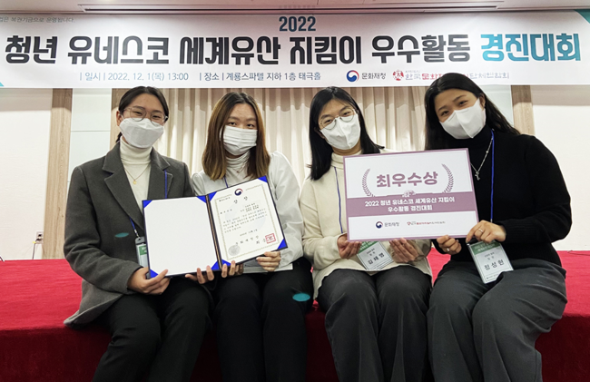 [시사뉴스 홍경의 기자] 동덕여자대학교(총장 김명애) 국사학전공 학생들이 ‘2022 청년 유네스코 세계유산 지킴이 우수활동 경진대회’에서 최우수상(문화재청장상)을 수상했다.