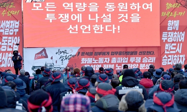 [시사뉴스 홍경의 기자] 전국민주노동조합총연맹(민주노총) 공공운수노조 화물연대 집단운송거부(총파업) 인원이 하루 만에 1000명 가까이 감소한 것으로 조사됐다.