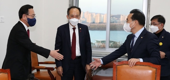 한편, 내일(9일) 정기국회가 막을 내리는 가운데 김진표 국회의장은 내년도 예산안 처리를 위해 이날과 내일 본회의를 열겠다고 예고한 바 있다. 여야는 예산안 처리 협의를 위해 양당 원내대표와 정책위의장·예산결산특별위원회 간사가 참여하는 이른바 '3+3' 협의를 진행 중이다.