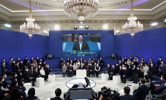 윤 대통령은 노인 고독 문제에 대해 "리(里) 단위의 마을에 가면 마을회관 같은 곳이 있다. 연세를 많이 드신 분들이 삼시세끼를 다 해결하고, 문화생활도 한다"며 "도시에서도 이런 공동주택을, 식사·의료·문화 생활을 같이 할 수 있는 곳을 많이 개발해야 한다"고 강조했다.