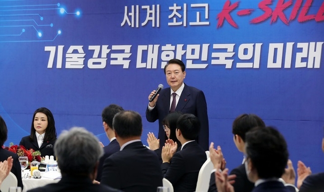 윤 대통령은 "4차 산업혁명이 빠르게 진행되고 있는 지금은 기술과 인재가 국가 운명을 좌우한다"며 "청년 기술인재의 양성과 숙련기술인이 존경받는 사회를 만들겠다"고 밝혔다.