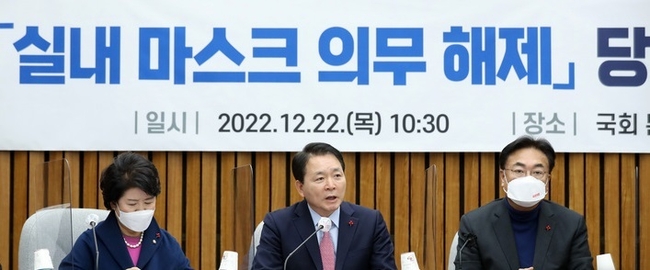 성 정책위의장은 "향후 실내 마스크 해제 권고로 바뀐 이후 확진자가 증가하더라도 우리가 가지고 있는 의료인력과 시설이 충분해 대응 역량을 가지고 있다는 전문가의 일치된 의견을 정부 측에 전달했다"고 밝혔다.