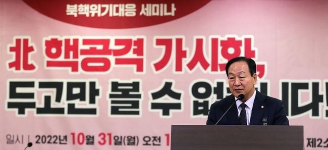 그는 "절체절명의 상황에서 미국 확장억제 전략의 구체성을 담보하기 위한 후속조치가 반드시 정부 차원에서 이뤄져야 한다"며 "한미연합사령부의 해체를 전제한 전시작전통제권 전환도 다시 검토해 연합사 체제에서 (북한 핵 위협에) 대응해야 한다"고 했다.