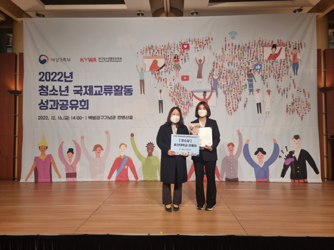[시사뉴스 홍경의 기자] 호산대학교(총장 김재현) 간호학과 강동희 학생이 지난 16일 서울 용산구 백범김구기념관 컨벤션홀에서 열린 ‘2022년 청소년 국제교류활동 성과공유회’에서 ‘2022 국제청소년리더교류지원사업’ 우수 활동수기 부문 한국청소년활동진흥원 이사장상을 수상했다.