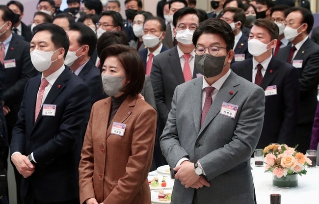 2일 뉴시스 취재 결과, 이날 청와대 영빈관에서 열린 신년인사회에는 국민의힘 의원 115명 중에 90여명 의원이 참석했다