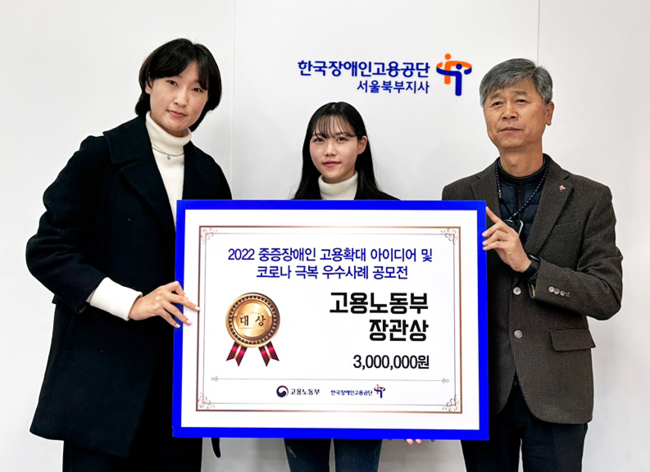 [시사뉴스 홍경의 기자] 동덕여자대학교(총장 김명애) 보건관리학과 학생들이 ‘2022 중증장애인 고용확대 아이디어 및 코로나 극복 우수사례 공모전’에서 대상(고용노동부 장관상)을 수상했다.