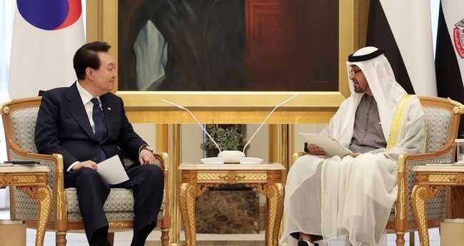 이날 오전에는 UAE 일정의 핵심인 무함마드 빈 자예드 알 나흐얀 UAE 대통령과의 정상회담이 진행됐다.