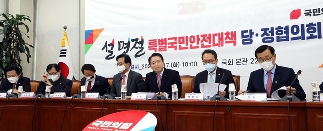 [시사뉴스 홍경의 기자] 국민의힘과 정부는 17일 오전 국회에서 당정협의회를 열고 설 명절 특별 국민 안전 대책을 논의한다.