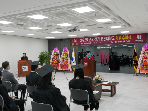[시사뉴스 홍경의 기자] 호산대학교는 지난 10일 교내 통합문화관에서 ‘2022학년도 제31회 전기 학위수여식’을 개최했다고 밝혔다.