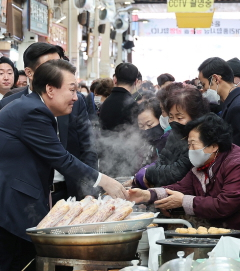 특히 윤 대통령은 "고물가 등 어려운 상황에서도 열심히 일하는 모습을 보면 제가 더 열심히 일해야 겠다는 생각이 든다"며 "전통시장을 방문하면 제가 왜 대통령이 됐고, 제가 누구를 위해서 무엇을 위해서 일해야 하는지 가슴으로 느끼게 된다"고 말했다.