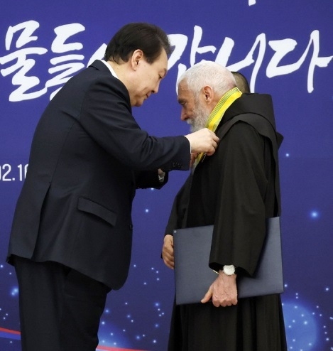 윤 대통령은 42년 간 한센인과 중증장애인들을 보살핀 스페인 국적의 유의배(루이스 마리아 우리베) 신부와 ·손재한 한성손재한장학회 이사장 등에게 '국민훈장 모란장'을 수여했다.