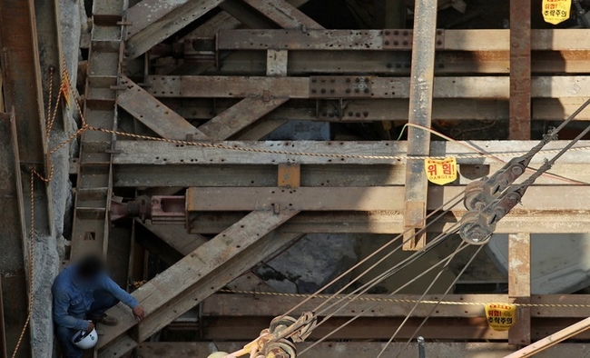 B씨는 작업 발판 일체형 거푸집(RCS) 위에서 낙하물 방지 철판 고정 작업을 하던 중 떨어진 것으로 전해졌다. B씨는 병원으로 옮겨졌지만 숨졌다.