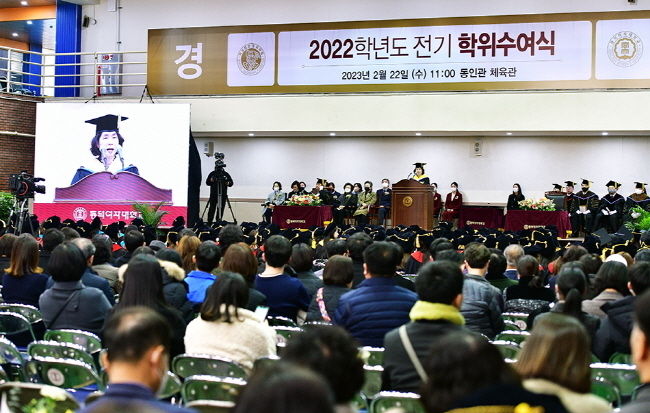 [시사뉴스 홍경의 기자] 동덕여자대학교(총장 김명애) 2022학년도 전기 학위수여식이 22일(수) 본교 동인관 체육관에서 열렸다.