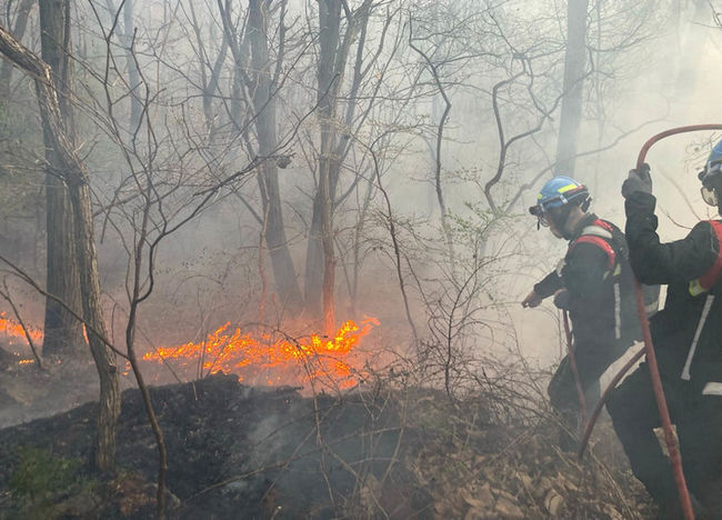 건조한 날씨 속 이 산불로 임야·농경지 1㏊가 탔다. 인명 피해는 없었다.