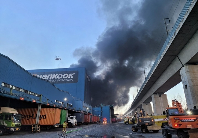 [시사뉴스 홍경의 기자] 대전시 대덕구에 있는 한국타이어 대전공장에서 발생한 화재의 초진이 발생 약 13시간 만에 완료됐다.