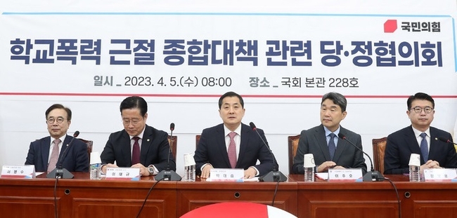 [시사뉴스 홍경의 기자] 국민의힘과 정부는 5일 학교폭력 근절 방안을 마련하기 위한 논의에 돌입했다. 당정은 가해 학생에 대한 불이익을 강화하는 한편, 피해 학생에 대한 지원을 늘려야 한다는 점에 공감했다.